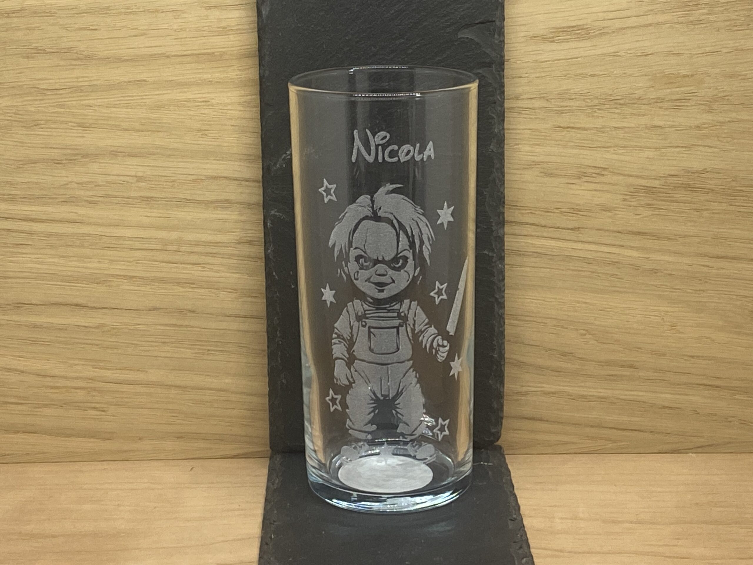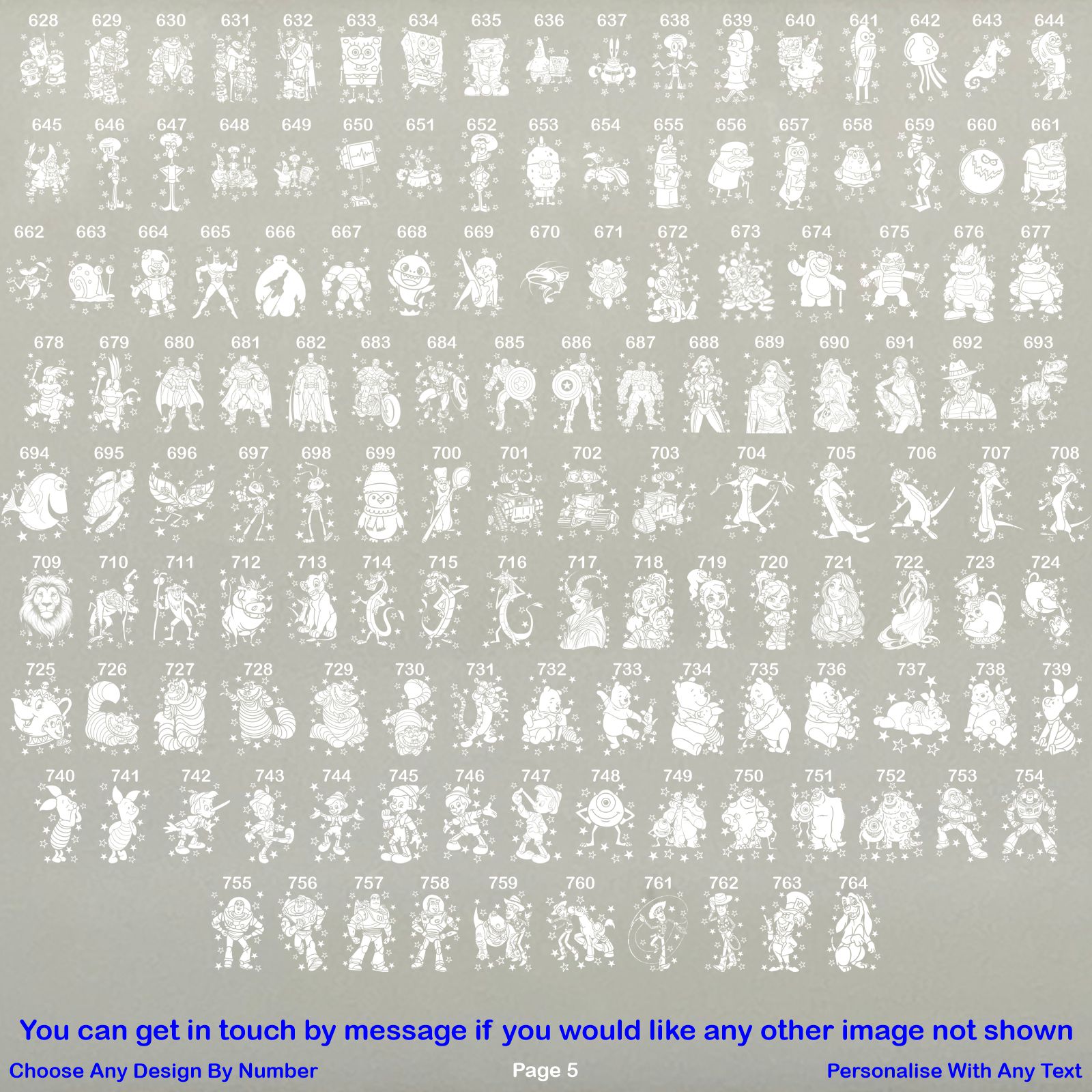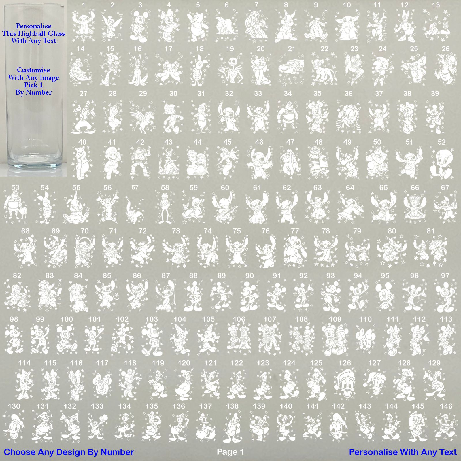 Take a look at our sellers other items for more designs to choose from. Type your text exactly as you would like it on the glass, choose your character by number from the photo listings page that you would like engraving on the glass or the glass can be engraved with your own choice image, just upload your image via message to seller before purchasing so we can make sure it can be engraved onto glass and we can then send you a draft layout of the design.