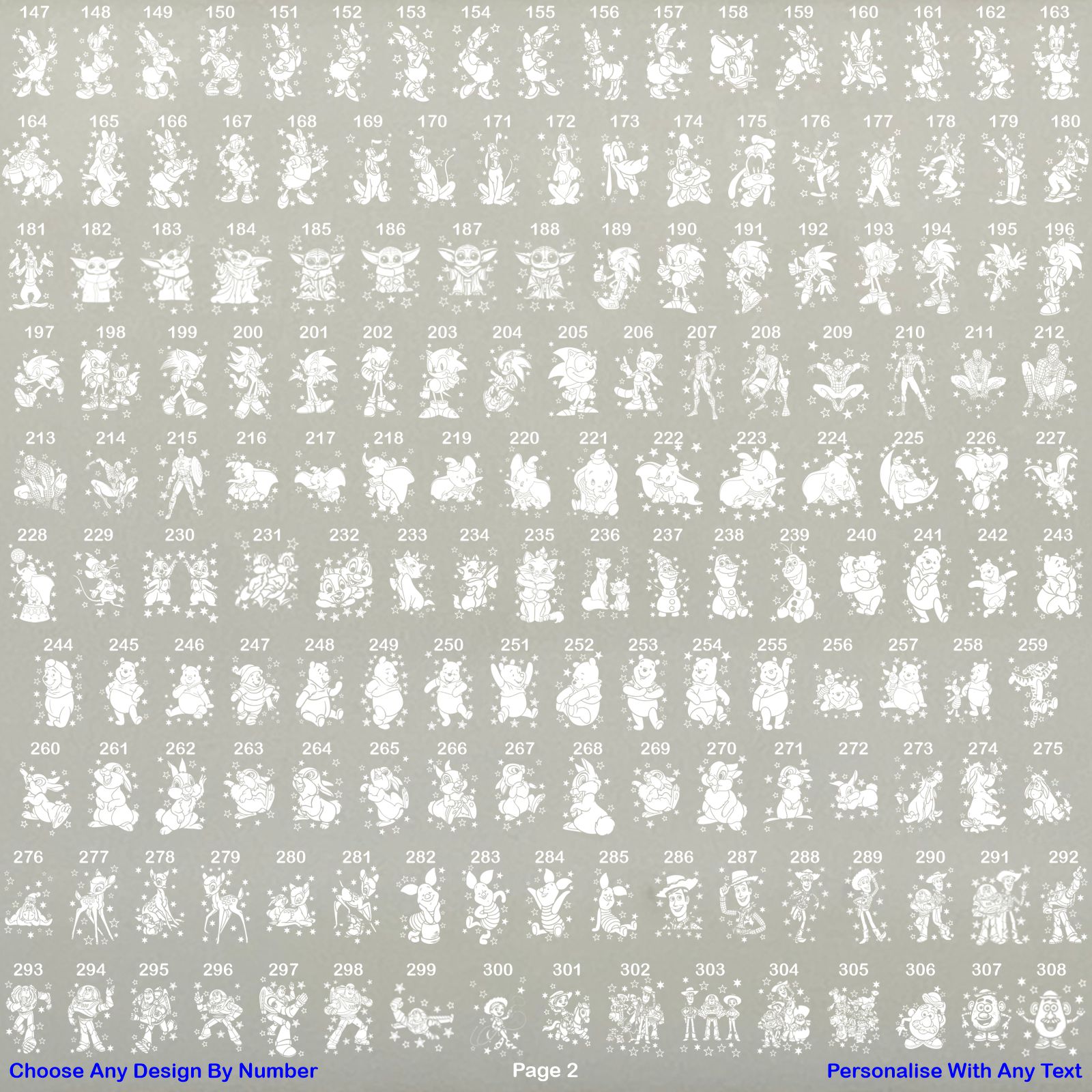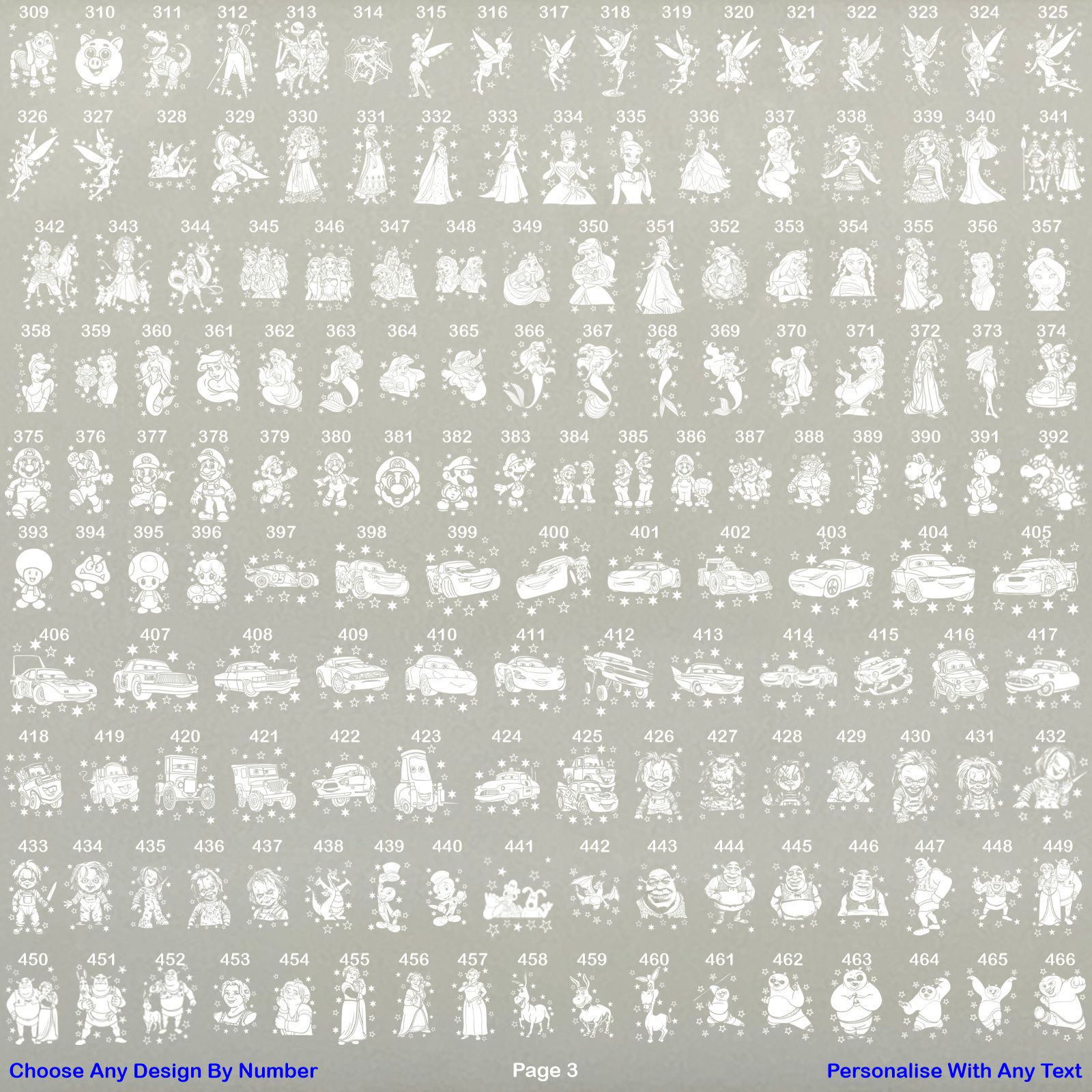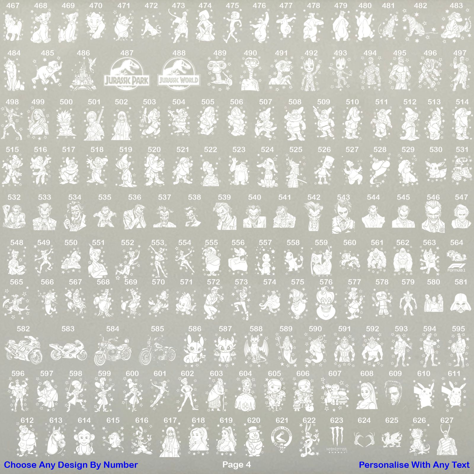 Take a look at our sellers other items for more designs to choose from. Type your text exactly as you would like it on the glass, choose your character by number from the photo listings page that you would like engraving on the glass or the glass can be engraved with your own choice image, just upload your image via message to seller before purchasing so we can make sure it can be engraved onto glass and we can then send you a draft layout of the design.